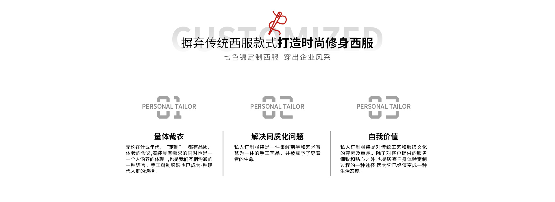 - 安徽七色錦服飾有限公司成立于2011年07月19日,公司位于安徽省合肥市包河工業(yè)區(qū)延安路17號,廠房面積約5000平方米,投資資金1000萬元。作為一家集服裝設計,生產(chǎn),服務于一體的中、檔次高的西裝、襯衫企業(yè),服務專業(yè)、顧客滿意”的經(jīng)營宗旨、以“客戶為先、市場導向”為經(jīng)營理念更好的服務于廣大消費者、依靠高超的技術,先進的設備,嚴格的管理,穩(wěn)定的產(chǎn)品質量,精細的制作工藝,周到的客戶服務贏取了廣消費者的信賴和好評.各類服裝服飾專業(yè)技術人員100多人,各類先進的生產(chǎn)設備150多臺,具有設計、制造各類服裝服飾的能力。公司是以從事中、檔次高的西服、襯衫、西褲、西裙、大衣、領帶、皮鞋等設計、生產(chǎn)、銷售一體化為主,為證券、單位、團體、酒店、學校等企事業(yè)單位定制專業(yè)的服飾公司并通過了ISO19001:2015質量體系認證、ISO14001:2015環(huán)境體系認證、OHSAS18001:2007職業(yè)健康安全管理體系等認證...